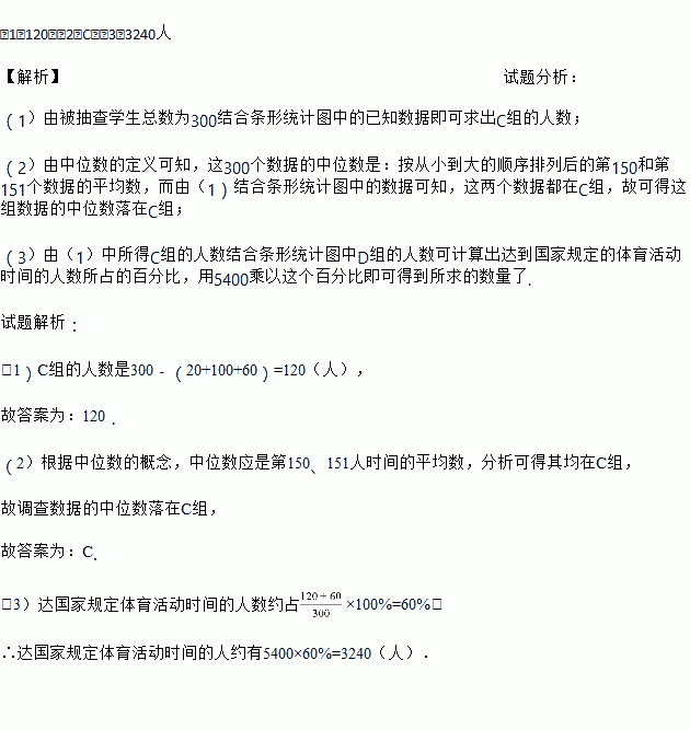 (3)若我区有5400名初中学生,请你估计其中达国家规定体育活动时间的人约有多少?