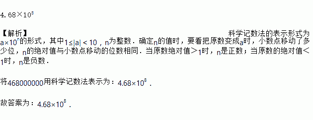 “互联网+”已全面进入人们的日常生活,据有关部门统计,目前全国4G用户数达到468000000户,则数字468000000用科学记数法表示为______________.