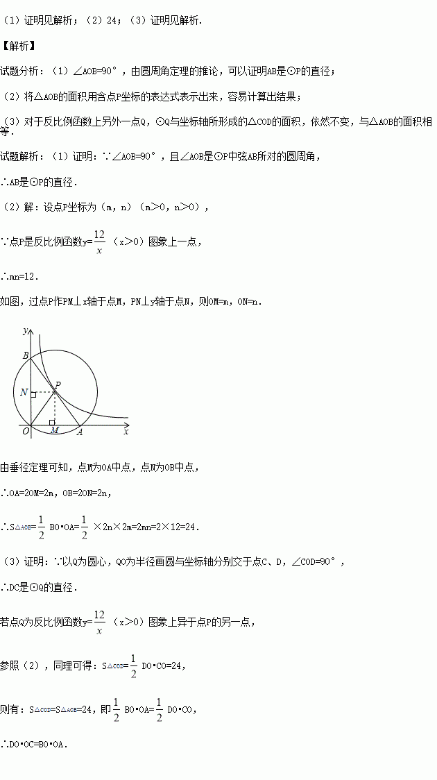 (x>0)图象上任意一点,以P为圆心,PO为半径的圆与坐标轴分别交于点A、B.
