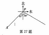 如图,小岛A在港口P的南偏西45º方向、距离港口81千米处,甲船从A出发,沿AP方向以9千米/时的速度驶向港口,乙船从港口P出发,沿南偏东60º方向以18千米/时的速度驶离港口,现两船同时出发.