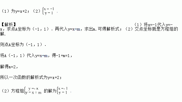 若正比例函数y=-x的图象与一次函数y=x+m的图象交于点A,且点A的横坐标为-1.