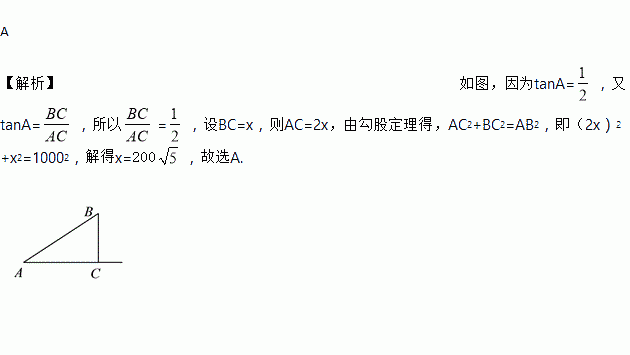 小明沿着坡度为1∶2的山坡向上走了1 000 m,则他升高了( )