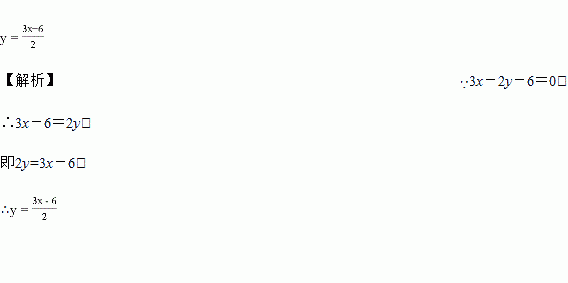 由方程3x-2y-6=0可得到用x表示y的式子是_________.