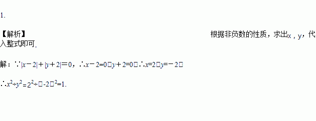 若|x-2|+|y+2|=0,则x2÷y2= .
