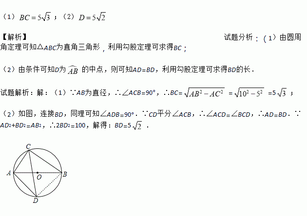 如图, 的直径AB的长为10,弦AC的长为的平分线交于点D.