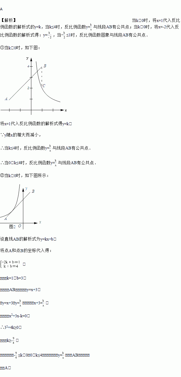 与线段AB有公共点时,k的取值范围是( )