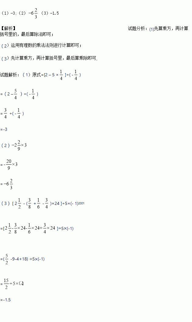 (3) [ 2- (+-)×24 ]÷5×(- 1)2001