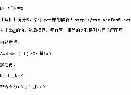 若关于x的方程kx2-2x-1=0有两个实数根,则实数k的取值范围是____________.
