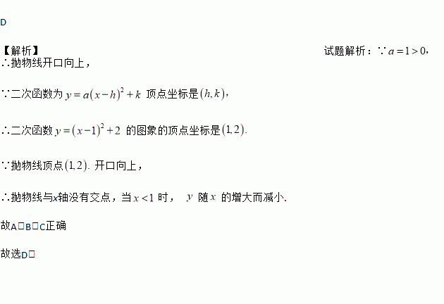 对于抛物线y=(x﹣1)2+2的说法错误的是( )
