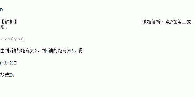 平面直角坐标系中,若P(m,n)在第三象限且到x轴,y轴的距离分别为2,3,则点P的坐标为( )