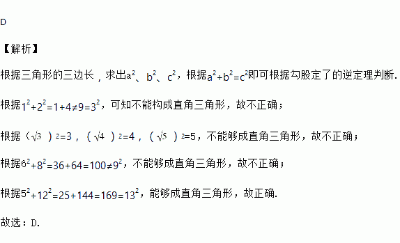 王老师给出了下列三条线段的长度,其中能首尾相接构成直角三角形的是( )