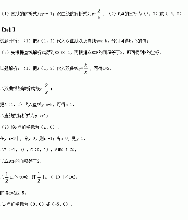 (1)求直线和双曲线的解析式;