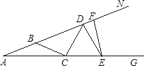 如图,B,D,F在AN上,C,E在A G上,且AB=BC=CD,EC=ED=EF,∠A=20°,则∠FEG的度数是_____度.