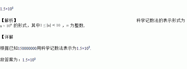 太阳与地球的平均距离大约是150 000 000千米,数据150 000 000用科学记数法表示为 _______.