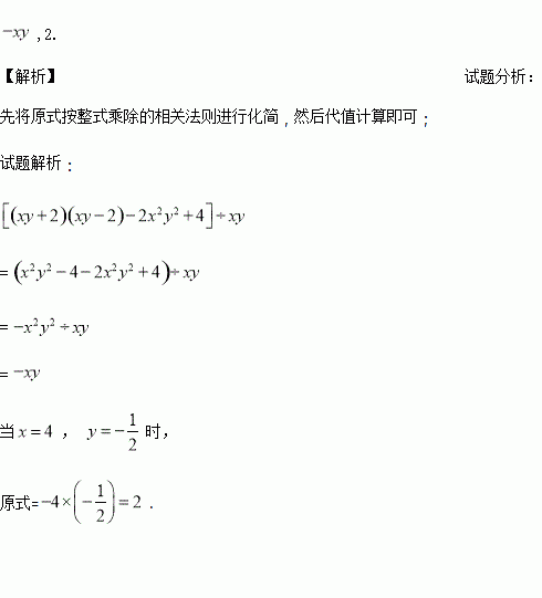 先化简,再求值 ,其中x=4,y=-.