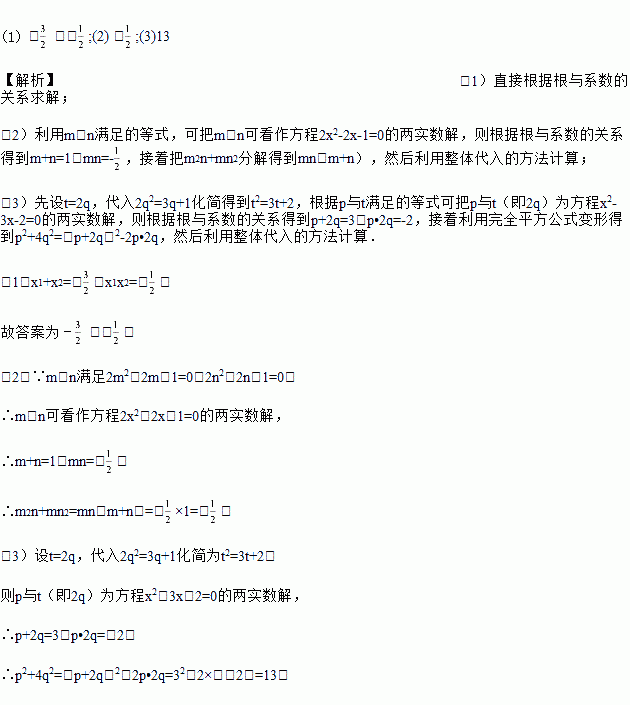 (3)已知实数p、q满足p2=3p+2,2q2=3q+1,且p≠2q,求p2+4q2的值.