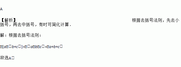 A 【解析】根据去括号法则,先去小括号,再去中括号,有时可简化计算. 【解析】 根据去括号法则: ﹣[a﹣(b+c)]=﹣(a﹣b﹣c)=﹣a+b+c. 故选A.