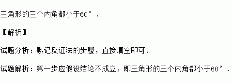 用反证法证明命题“三角形中至少有一个内角大于或等于60°”,第一步应假设 。