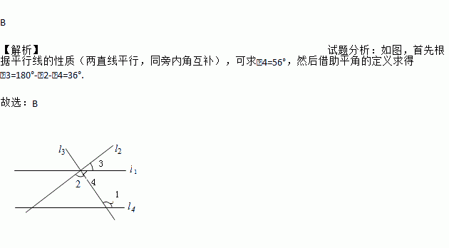 如图,直线l1,l2,l3交于一点,直线l4∥l1,若∠1=124°,∠2=88°,则∠3的度数为( )