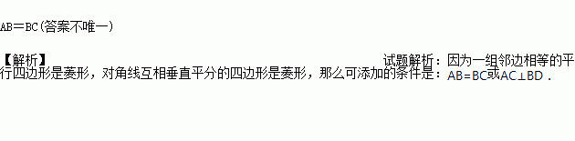 如图,如果要使?ABCD成为一个菱形,需要添加一个条件,那么你添加的条件是________.