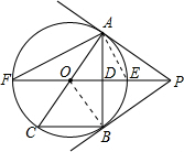 分析:(1)连接OB,证明△POB≌△POA,根据全等三角形的对应角相等证得∠OAP=90°,即直线PA为⊙O的切线;