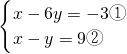 ,再②-①,消去未知数x,得到y的一元一次方程,求出y的值,进而求出x即可;