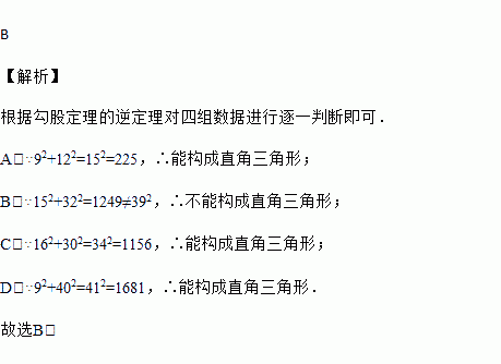 A. 9,12,15 B. 15,32,39 C. 16,30,32 D. 9,40,41