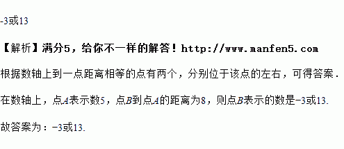 在数轴上,点A表示的数是5,若点B与点A之间距离是8,则点B表示的数是__________.