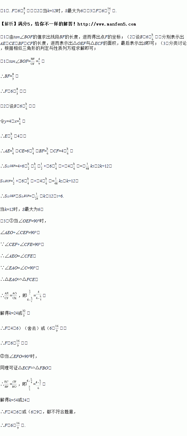 (2)当点F在BC上移动时,△OEF与△ECF的面积差记为S,求当k为何值时,S有最大值,最大值是多少?
