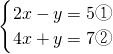 (2)利用加减法,首先①+②,消去y,即可求得x的值,然后将x代入①,即可求得原方程组的解.