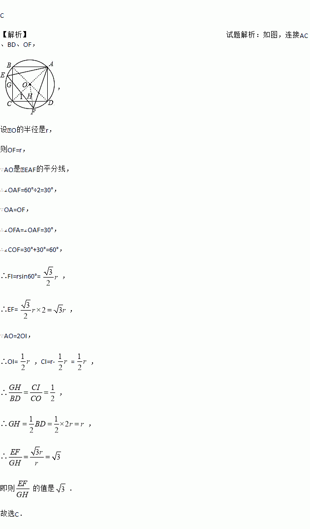 如图,正方形ABCD和正△AEF都内接于⊙O,EF与BC、CD分别相交于点G、H,则