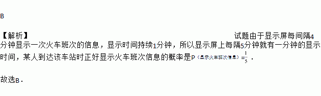 某火车站的显示屏每间隔4分钟显示一次火车班次的信息,显示时间持续1分钟,某人到达该车站时,显示屏正好显示火车班次信息的概率是( )