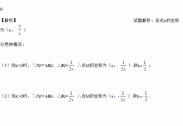 (k≠0)于点M.若PQ=4MQ,则k的值为( )