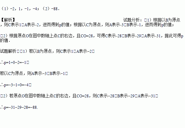 (2)若原点O在图中数轴上点C的右边,且CO=28,求p.