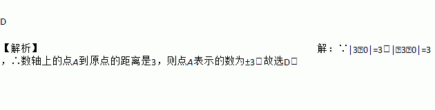 D 【解析】【解析】 ∵|3﹣0|=3,|﹣3﹣0|=3,∴数轴上的点A到原点的距离是3,则点A表示的数为±3.故选D.