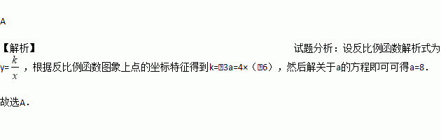 若点M(﹣3,a),N(4,﹣6)在同一个反比例函数的图象上,则a的值为( )