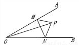 如图所示:∠AOB的内部有一点P,到顶点O的距离为5cm,M、N分别是射线OA、OB上的动点.若∠AOB =30,则△PMN周长的最小值为________.