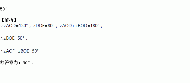 如图,直线AB、CD、EF相交于点O,∠AOD=150°,∠DOE=80°,则∠AOF=____.