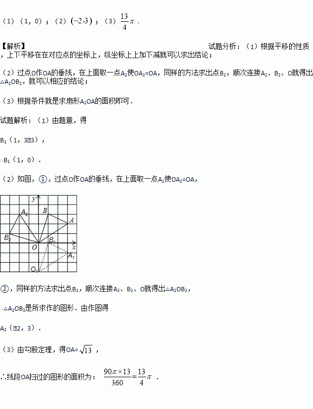 (1)将△AOB向下平移3个单位后得到△A1O1B1,则点B1的坐标为 ;