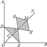 如图,在Rt∠AOB的平分线ON上依次取点C,F,M,过点C作DE⊥OC,分别交OA,OB于点D,E,以FM为对角线作菱形FGMH.已知∠DFE=∠GFH=120°,FG=FE,设OC=x,图中阴影部分面积为y,则y与x之间的函数关系式是( )
