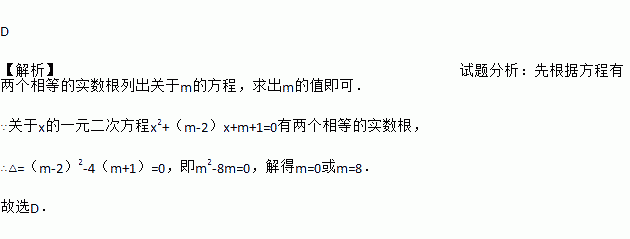 关于x的一元二次方程x2+(m﹣2)x+m+1=0有两个相等的实数根,则m的值是( )