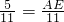 ∴△ABC与△AED的相似比为AC:AD=11:5.
