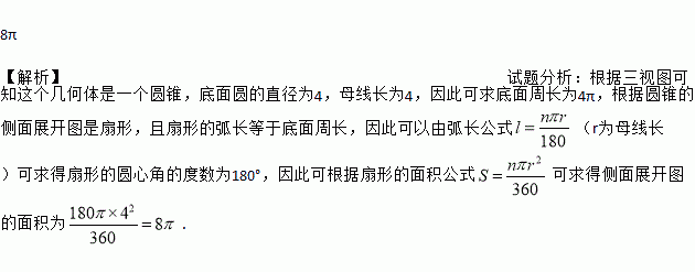 如图是一个几何体的三视图,其中主视图与左视图都是边长为4的等边三角形,则这个几何体的侧面展开图的面积为___.