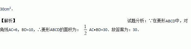 如图,在菱形ABCD中,对角线AC=6,BD=10,则菱形ABCD的面积为 .