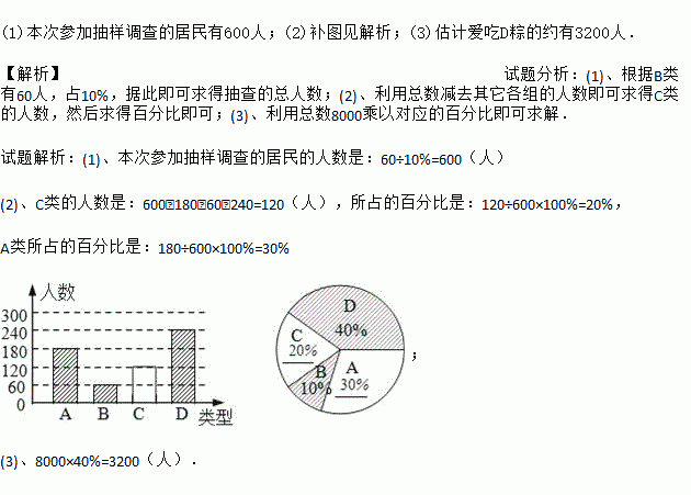 (3)若居民区有8000人,请估计爱吃D粽的人数.