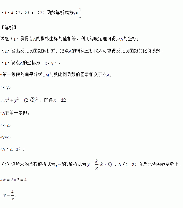 如图,第一象限的角平分线OM与反比例函数的图象相交于点A,已知OA=2.