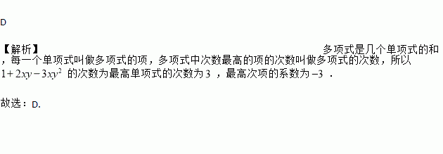 多项式的次数及最高次项的系数分别是( ).