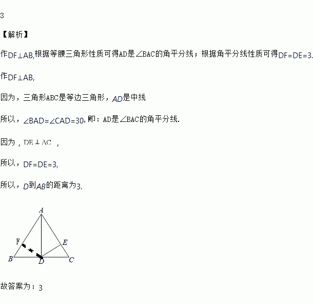如图,等边中,AD是中线,于点E,,则点D到AB的距离为:______.