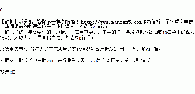 C. 反映重庆市6月份每天的空气质量的变化情况适合用折线统计图