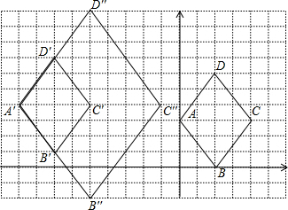分析:(1)将点A向左平移9个单位,向上平移1个单位,然后分别以沿着AA'的方向将D、C、B平移,顺次连接可得出新菱形.